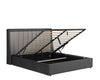 - Bed type: Upholstered gas-lift (hydraulic) storage bed with vertical channel (channeled) headboard.